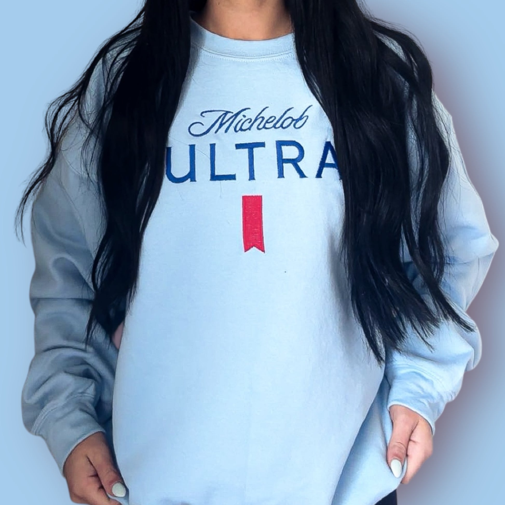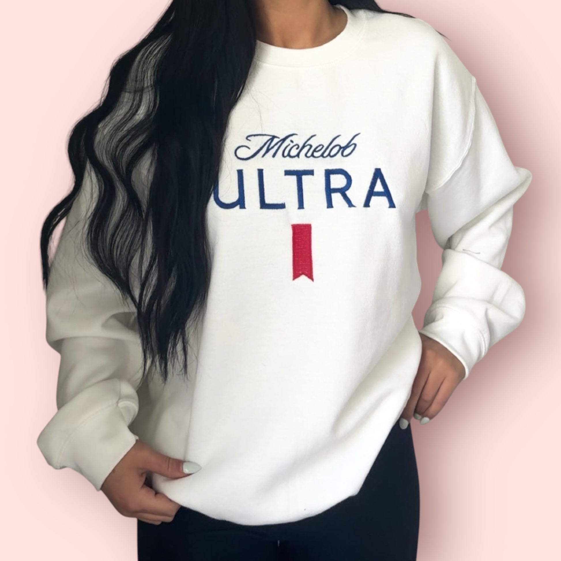 Elevate your everyday look with the Michelob Ultra Embroidered Crewneck, where comfort meets style. Crafted from premium soft-touch fabric, this crewneck sweatshirt features a unique, high-quality embroidery of the iconic Michelob Ultra logo, making it a standout piece in any wardrobe.